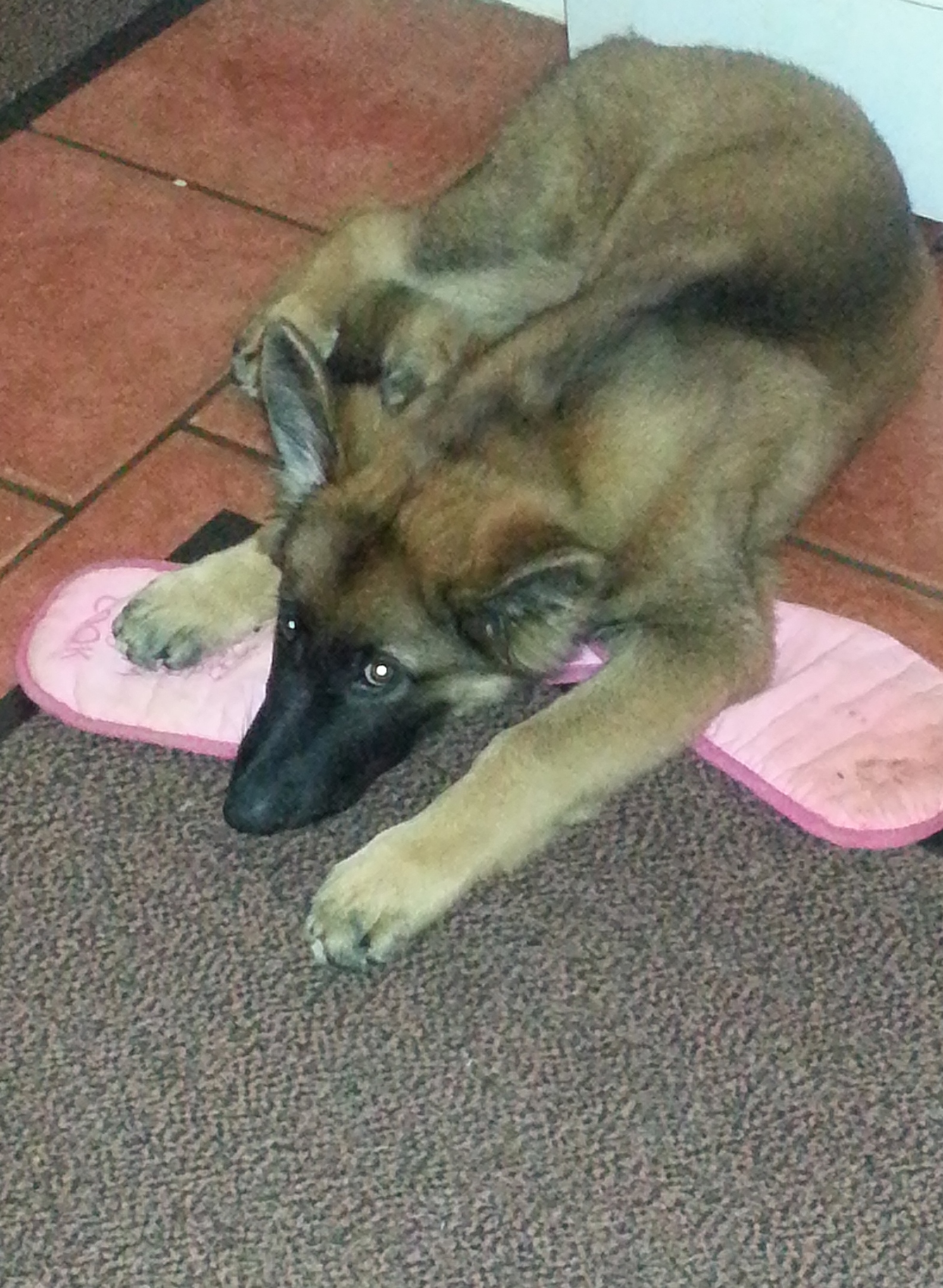 The puppy is ever growing and now joins the other hairy hoolie in greeting me when I bring the shopping back but he insists then on laying on all the bags! At the rate he is growing, I guess  I know have to say 1 & 3/4 hairy hoolies at the moment!