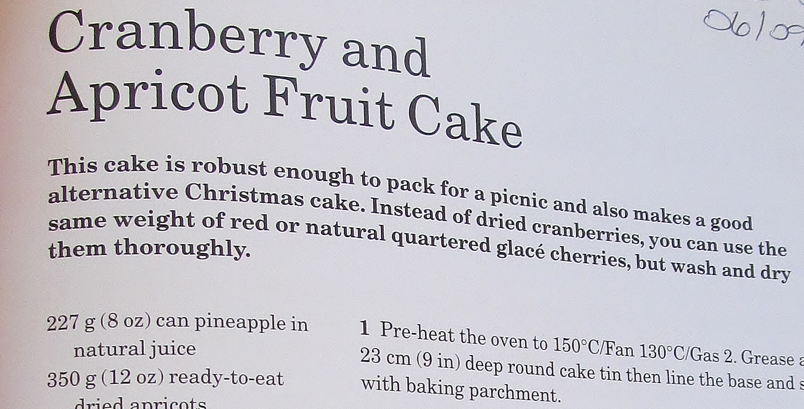 The second recipe was the cranberry and apricot fruit loaf. Mary tells you at the beginning of the recipe that this cake is robust enough to pack for a picnic but could also make a great alternative to a christmas cake.  I had to begin by draining a large tin of pineapple , coarsely chopping it and drying it as much as possible which involved lots of kitchen roll. I then had to cut the apricots into pieces and chop the almonds. Finally I was ready to mix all the ingredients together and pour into a tin and level the top. I didn’t decorate the top with whole blanched almonds as suggested- I forgot!!!