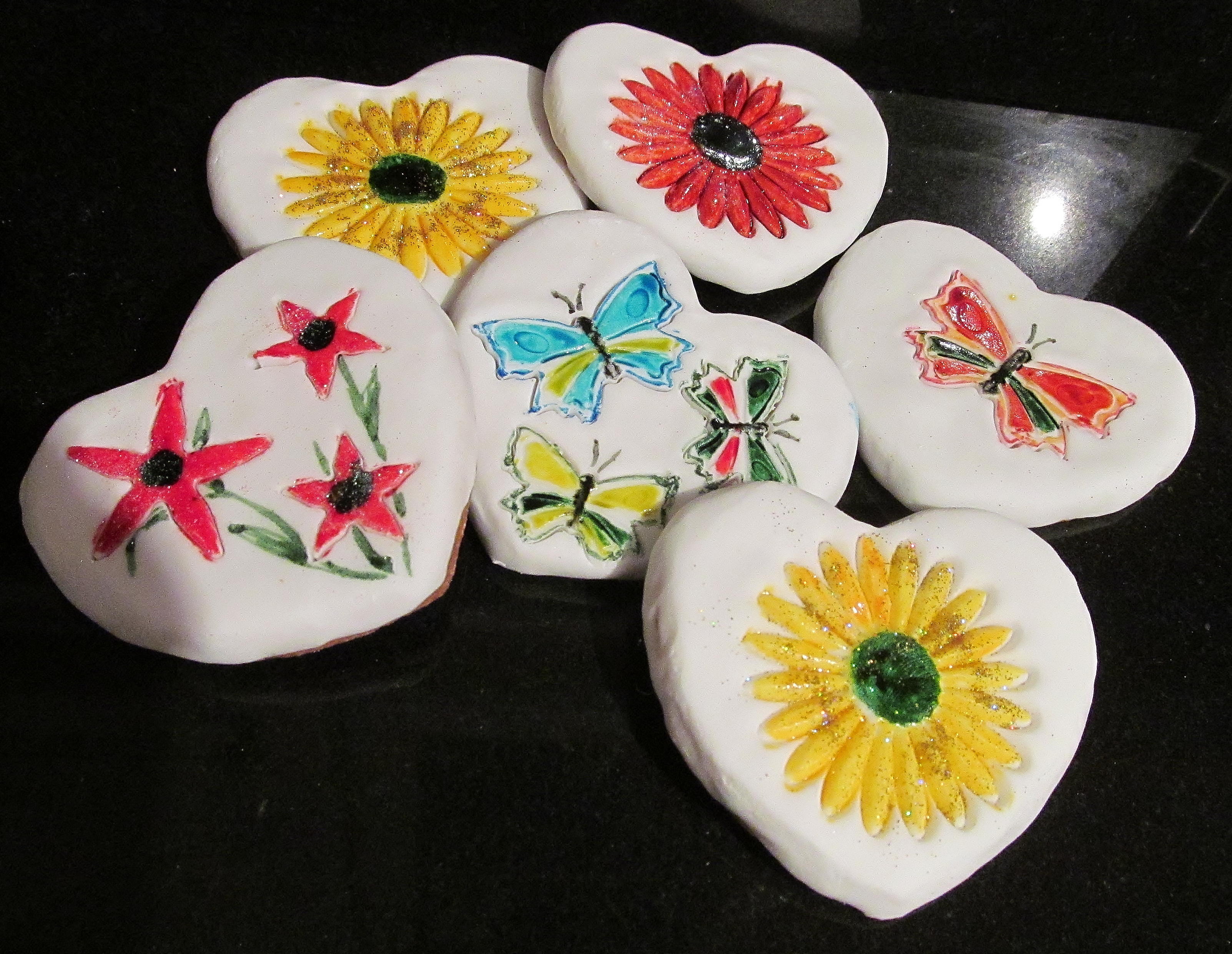 The recipe was simple enough, I had to whisk some egg whites, fold in ground almonds, sugar and almond extract and put the mix into a piping bag. Pipe rosettes onto a baking tray and top with a small piece of cherry and bake. When golden, mix some sugar and milk together and lightly brush over the petits fours.
