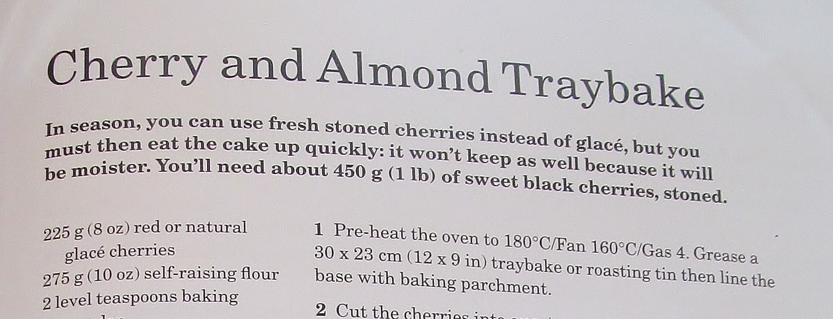 Week 89 took over where week 88 left off, halfway through managing hubby’s leg burn and various trips to hospital for leg dressings and caring for him at home. I used Mary Berry’s Baking Bible as a bit of respite and my challenge as an excuse to do something normal for an hour or two. I chose Mary’s almond and cherry tray bake and the Florentine biscuits. I had caught up on the Great British Bake Off and saw that they contestants would be making Florentine biscuits so thought I would give them a go as they were in the bible and I hadn’t done them yet.