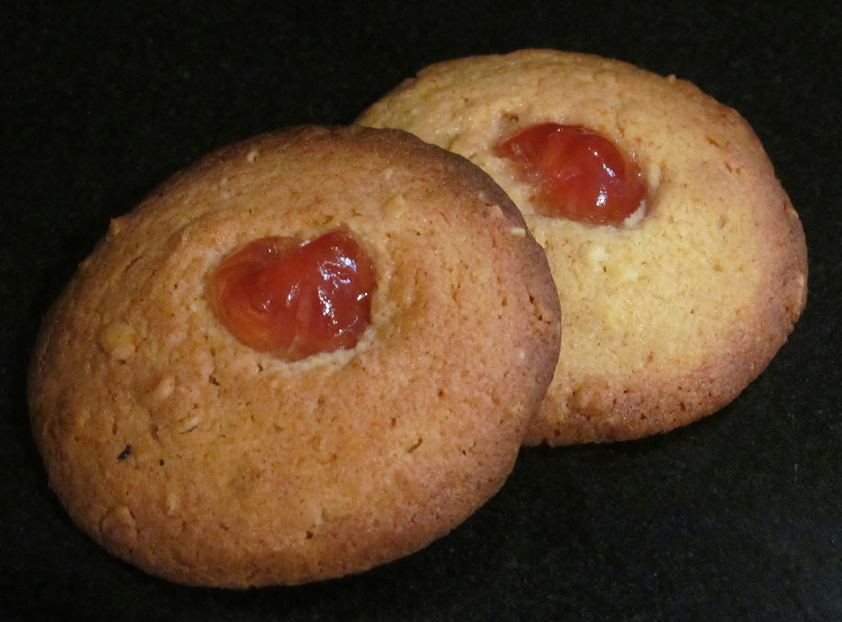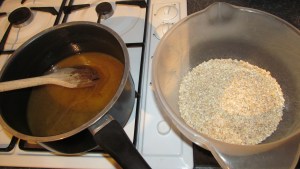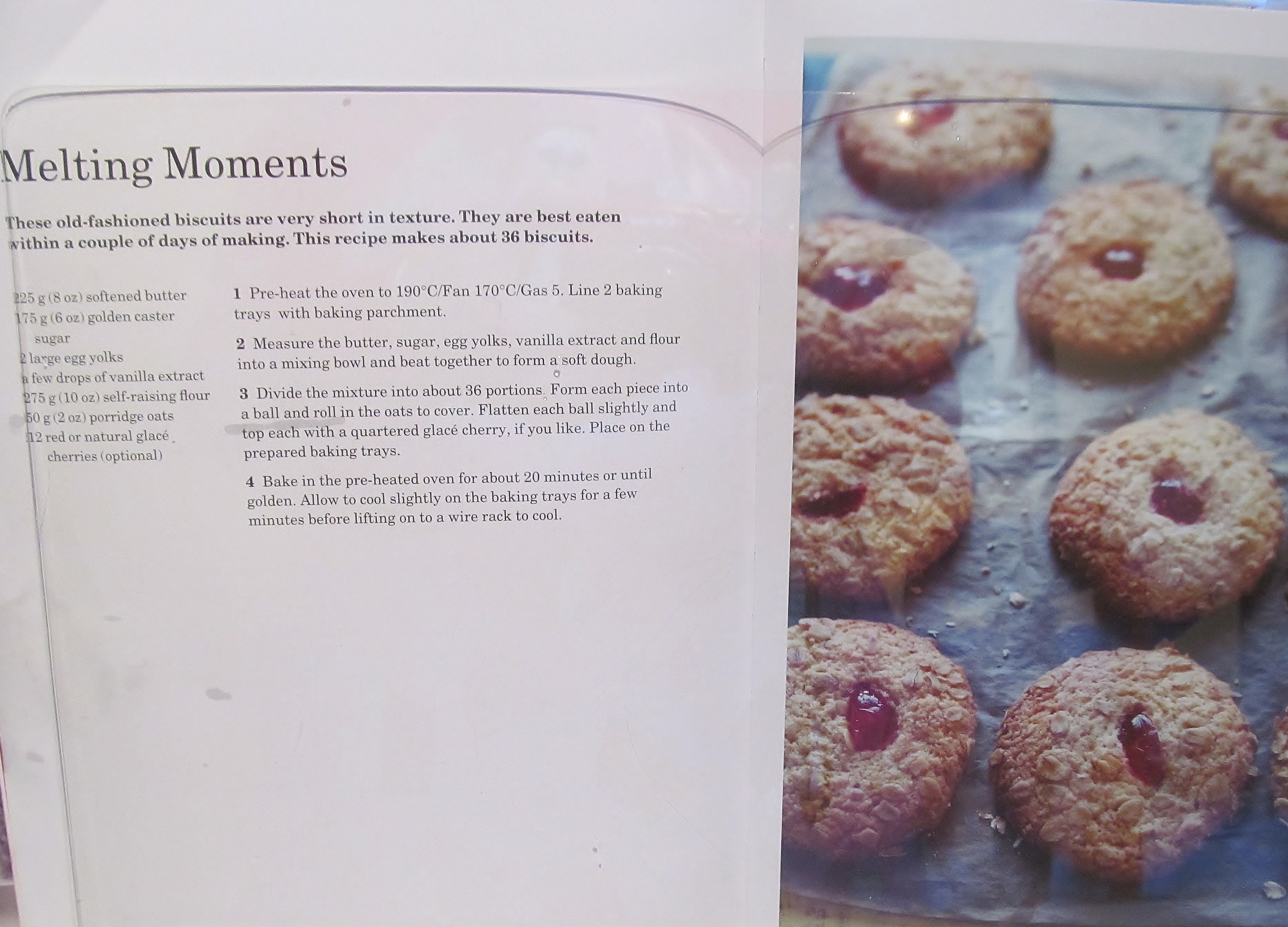 Mary’s next recipe should have been just as easy but either I was tired or not reading the recipe as carefully as I should have- and I wasn’t wearing my glasses. Mary tells you to add the butter, sugar, egg yolks, vanilla extract and flour into a bowl and mix into a dough- my HUGE mistake was at a quick glance I “misread” the golden (sugar) for golden syrup- and yes, that’s what I added instead of the sugar….. when I realised what I had done, I had 2 choices, continue and see how they turned out or throw the mix away and only have 1 bake this week…… so I continued…. and added the porridge oats to the dough and mixed them in when Mary clearly says ( on closer and second time of reading!!!…..Sigh…) make the biscuit dough, roll into small bowls and roll the balls in the porridge oats…. well at this point I was really kicking myself and decided to bake a batch to see how they turned out anyway- waste not , want not as my Nan would have said.