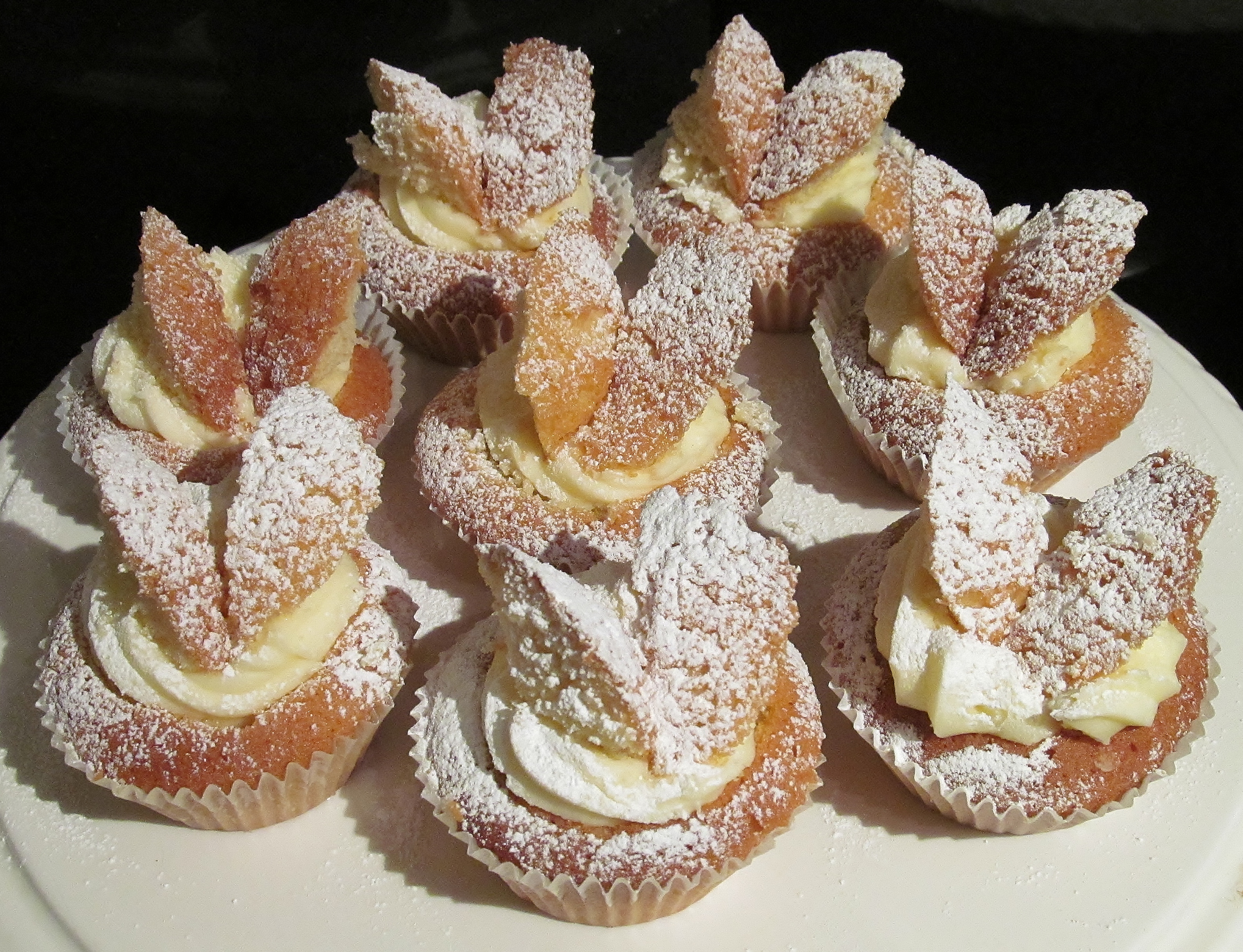 Then when I had piped and swirled and cut and artistically made butterfly shapes, I then finished them with a dusting of icing sugar. I was pleased with the way they looked.