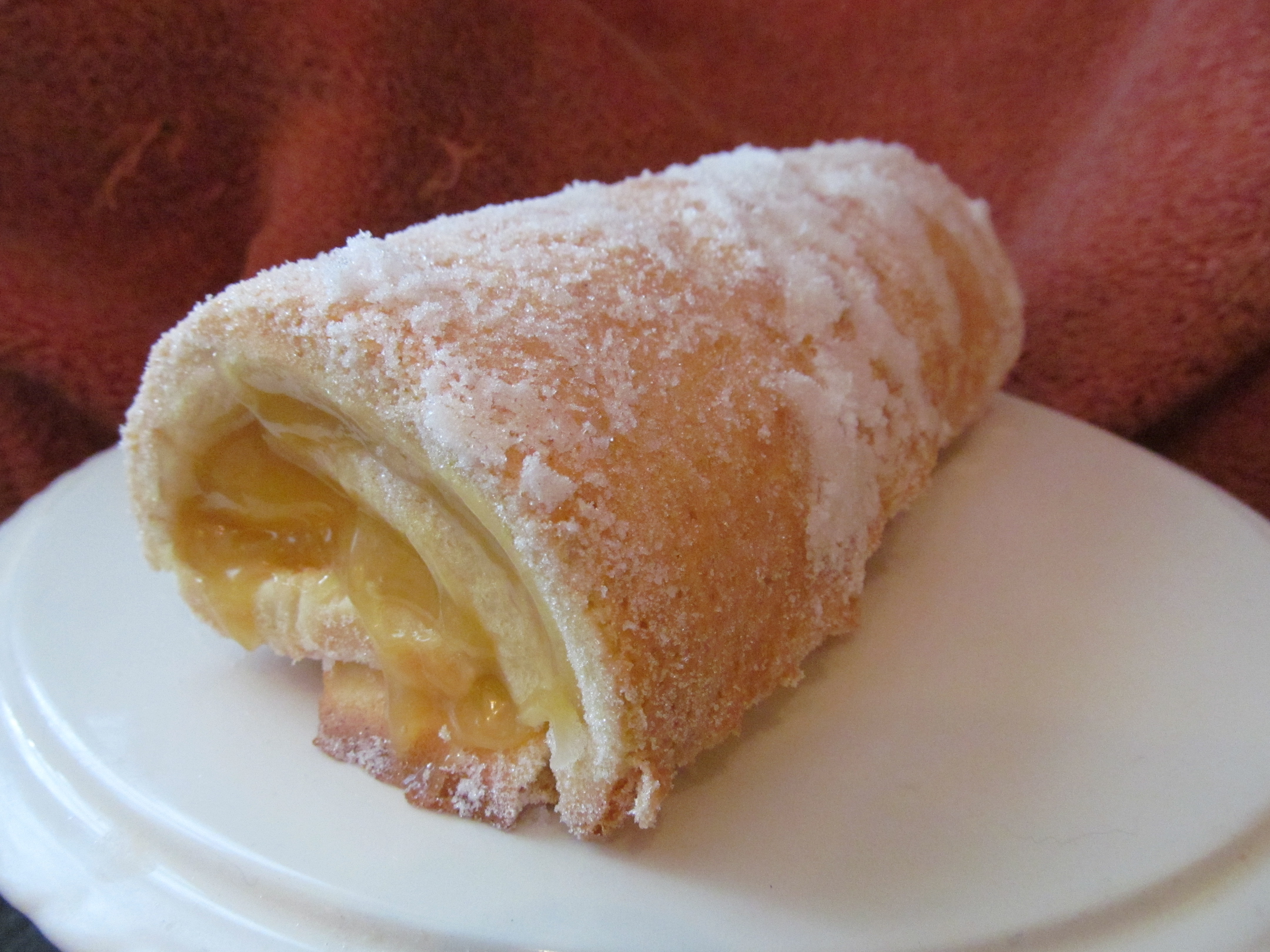 The sponge is a fatless sponge and easy to make. I whisked it all together and poured it into the prepared swiss roll tin. I put it in the oven for ten minutes and while it was baking put a sheet of greaseproof paper on the side with caster sugar sprinkled on it. Soon enough the sponge was done and I tipped it onto the prepared paper. Mary asks you to allow to cool “slightly” and then spread with jam. Slight hiccup here, my jam had grown a lovely mold on it so I quickly made some buttercream and used this instead. I rolled the cake into the roll and again , it split to my dismay but not all the way through. I sprinkled it liberally with caster sugar and took the photograph!