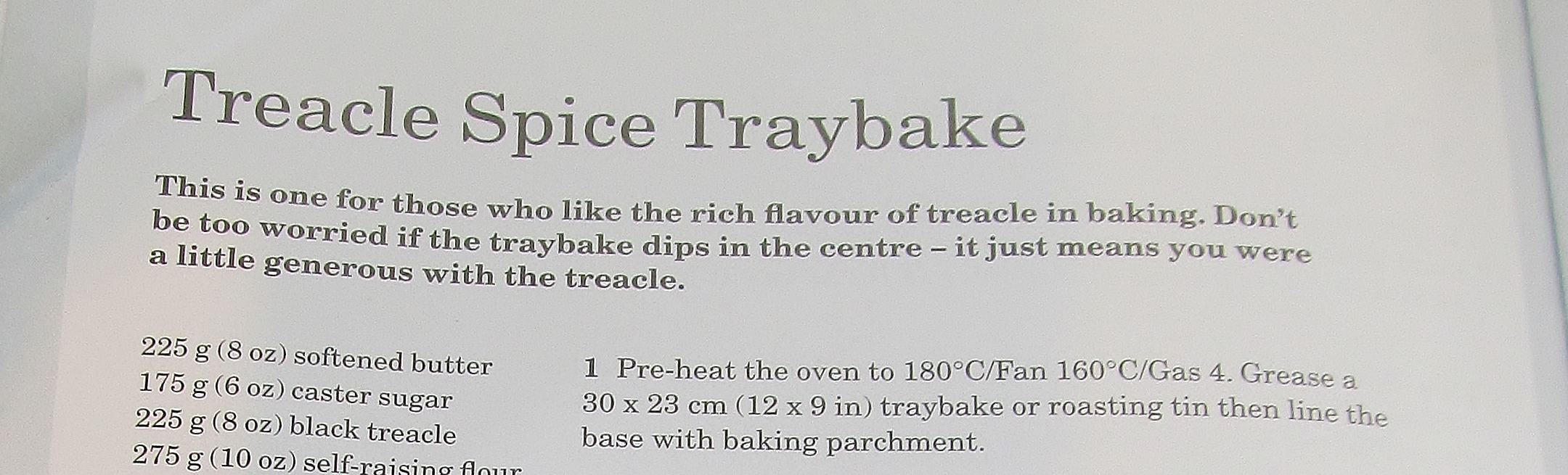 Week 93 and it’s taken a while to find the time to put this blog on even though it was done last weekend! I delved as usual into Mary Berry’s Baking Bible and found these two recipes. It has occurred to me that quite a few of the recipes left for Mary are complicated or rich cakes so i will have to endeavour to find some occasions to bake them! They are not your every day bakes. I started this week with the treacle spice tray bake. I took my new mixer for a “test drive” – and it didn’t dissapoint- it mixed this all in one recipe like a dream. ( Thank you again x) I lined a tray bake tin, poured it in and into the oven it went.